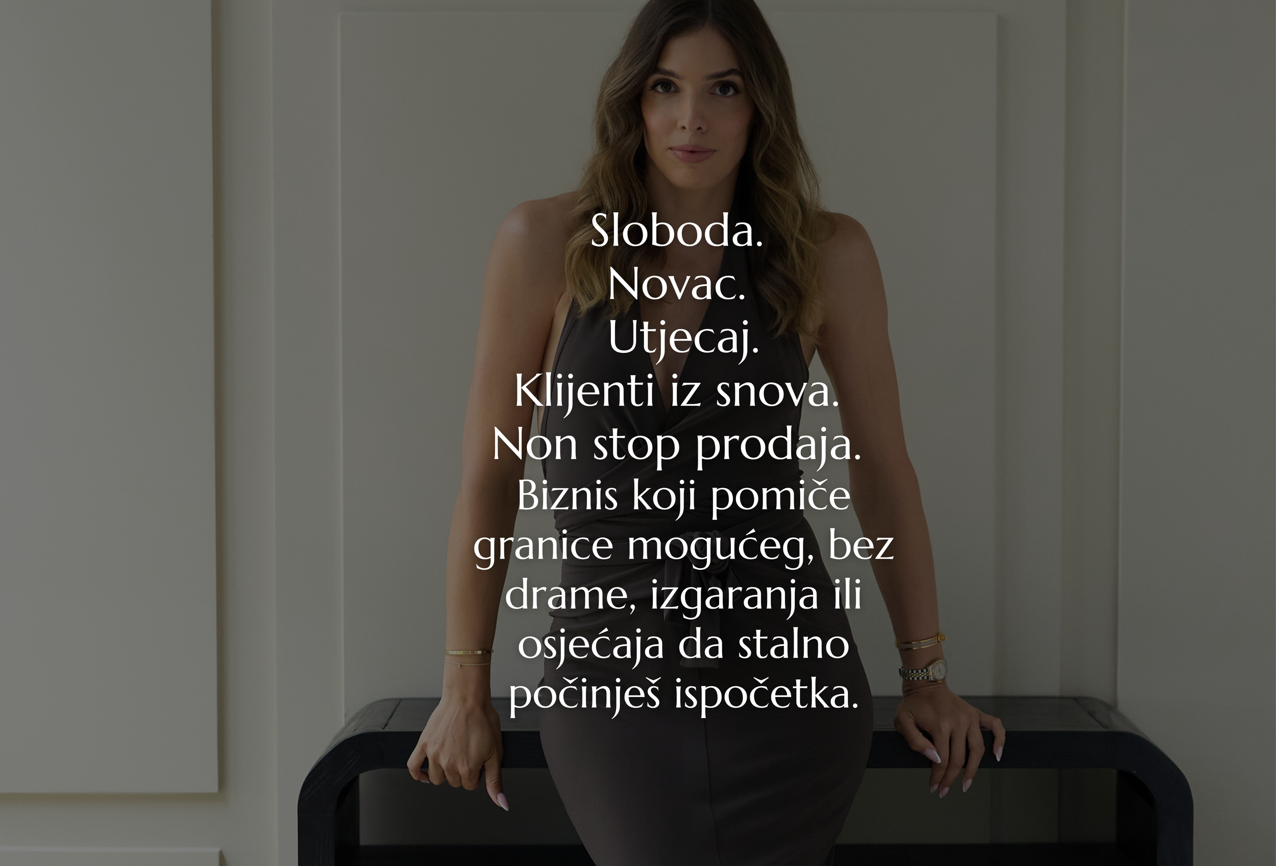 Ti želiš biti žena koja živi prodaju. Koja prodaje s lakoćom, kad god joj se prodaje. Koja uživa u tome. Žena koja se igra u svojim lansiranjima, koja se ne boji eksperimentirati, koja prioritizira užitak u procesu predstavljanja svog rada ljudima i koja se ne boji da isti neće doći do onih ljudi do kojih treba doći. Ti želiš iskoračiti iz svoje 'solo poduzetnica' ere i izgraditi sustav podrške koji će ti pomoći da skaliraš svoj biznis u multi šesteroznamenkastu dimenziju.
